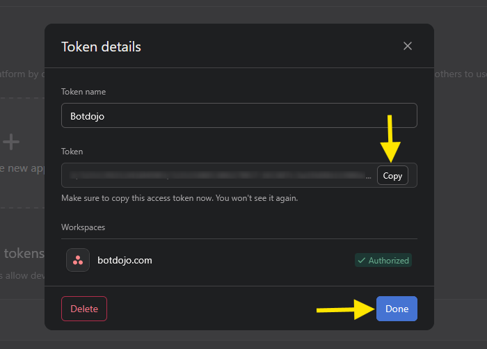 - Give it a descriptive name (e.g., "BotDojo Integration") and click Generate Token.