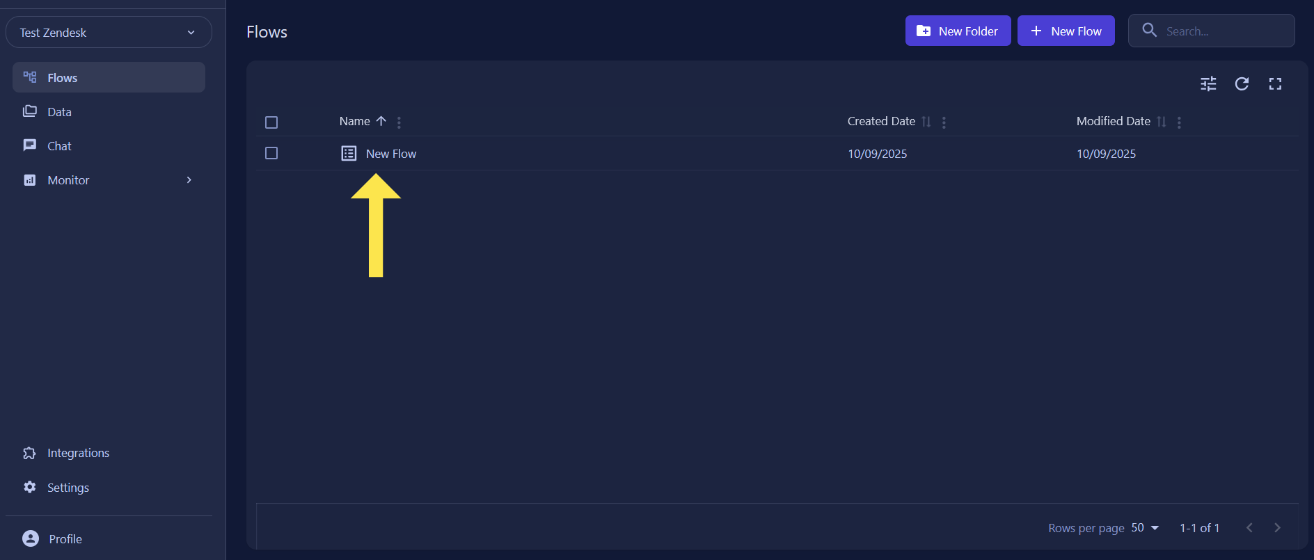 - Now that your Zendesk integration is set up, you can connect it to any BotDojo flow by creating triggers. Navigate to your BotDojo account > Flows and select the flow you want to connect.