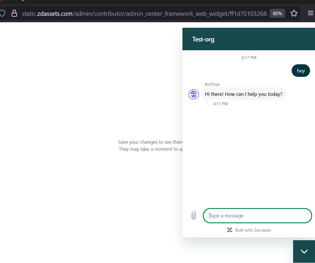 BotDojo can integrate your ChatBot into your Zendesk web chat widget. Follow these steps to set up the Zendesk integration:
