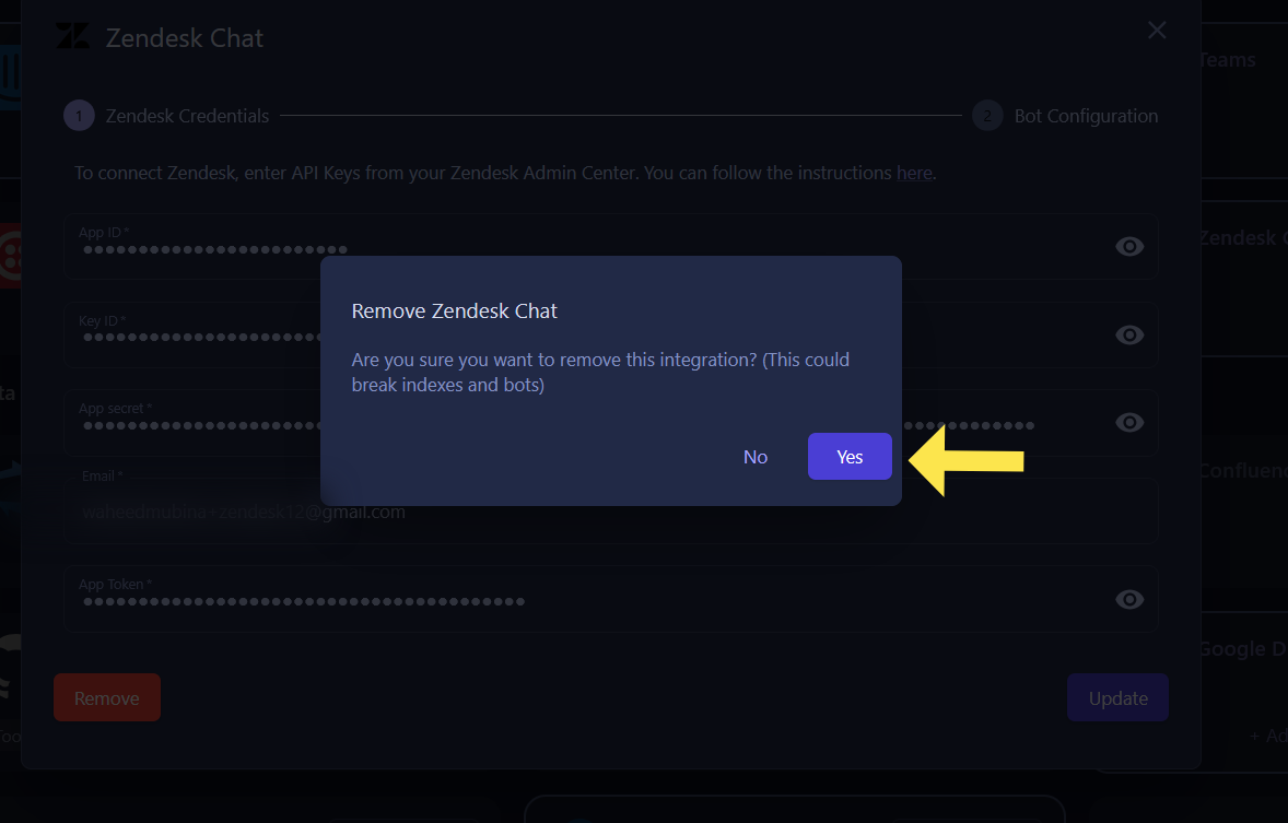 To safely remove the BotDojo integration from your Zendesk account, follow these steps in order: